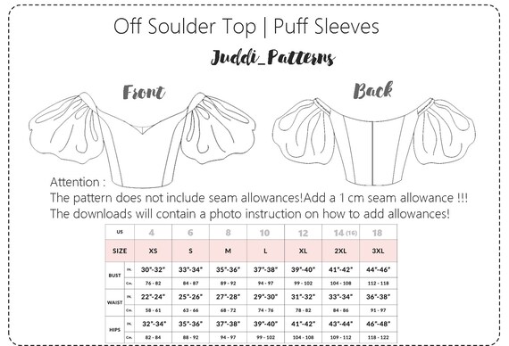 Off Shoulder Puff Sleeves Top Pdf Sewing Pattern Us 4 16 Etsy