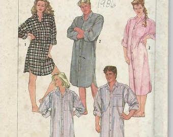 Simplicity Sewing Pattern 9291 Misses Men S Pajamas Nightshirt Nightcap Size Aa Chest Bust 42 48 Hip 43 49